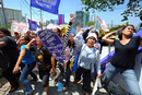 3月6日,菲律宾马尼拉,菲律宾妇女组织成员将一张抗议海报贴在能源部大门上。 TED ALJIBE/东方IC