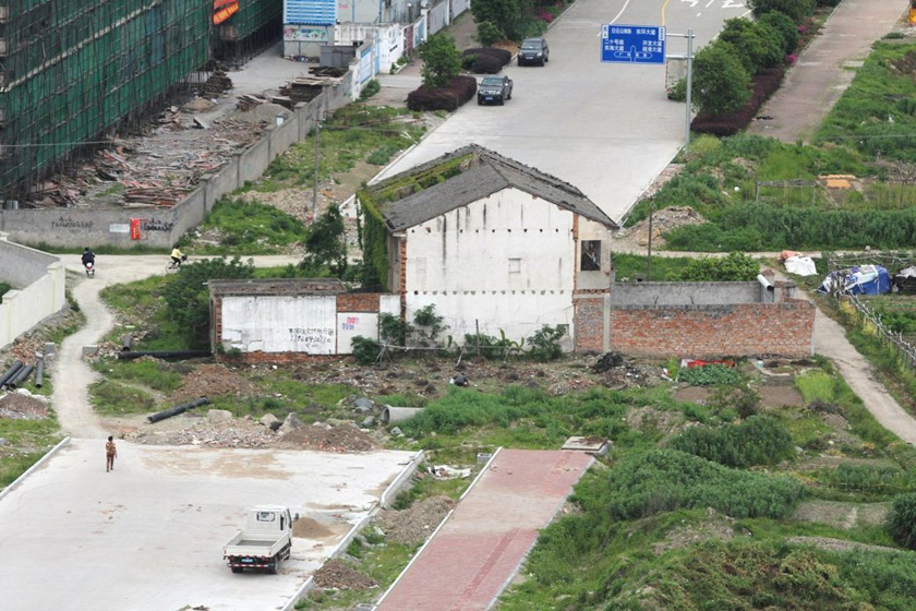 4月27日,浙江台州经济开发区体育场路殿后陶村,断开的近百米处,一条羊肠小道绕过两栋小楼,勉强连接着另一段体育场路。 潘侃俊/东方IC