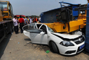 5月2日,郑州,被砸扁的小轿车。 平伟/东方IC