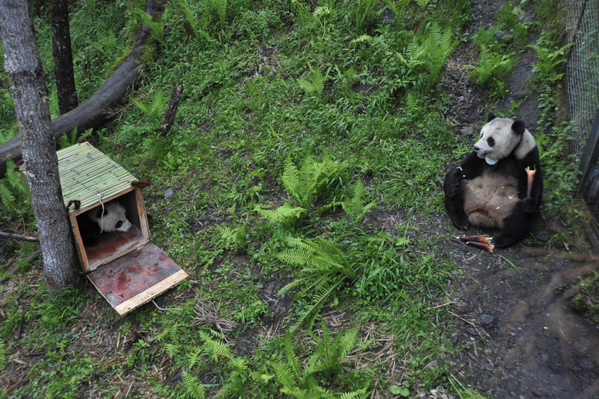 5月3日,四川卧龙野化培训基地,“淘淘”刚从笼子里面钻出来。 衡毅/CFP