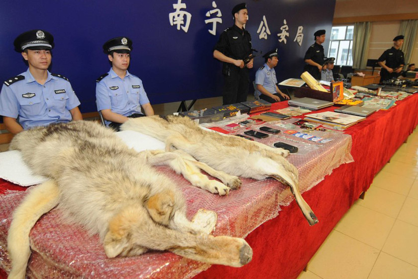 6月4日,南宁,追回的被盗狼皮。 何云/CFP