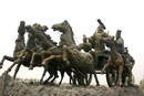 7月2日,山东滨州,“始皇东巡”群雕中的马失前蹄、车夫坠地、始皇失踪。 CFP