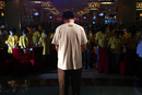 7月30日,北京,在台下正准备上台主持的崔永元,在和一位民工合影。 东方IC