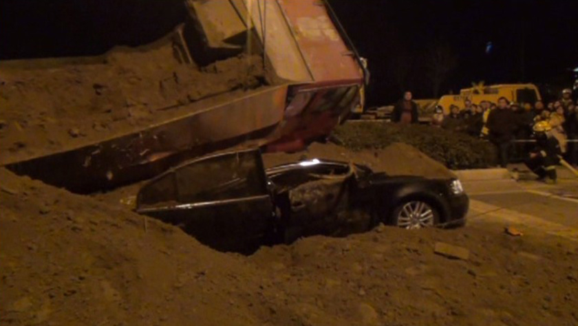 渣土车侧翻压扁轿车 两名银行行长身亡