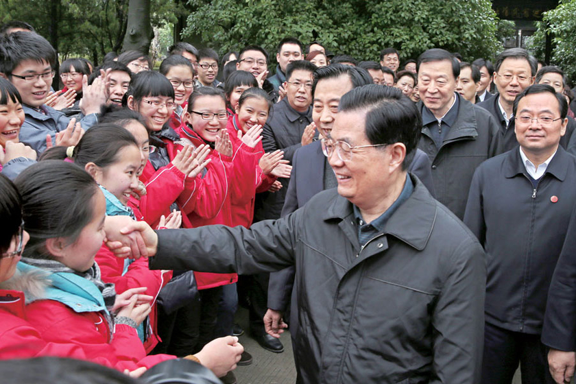 2012年12月27日至29日,胡锦涛在江苏泰州考察工作,泰州新闻网推出了记录胡锦涛在泰考察活动的高清图集。图为胡锦涛与小校友亲切握手。
