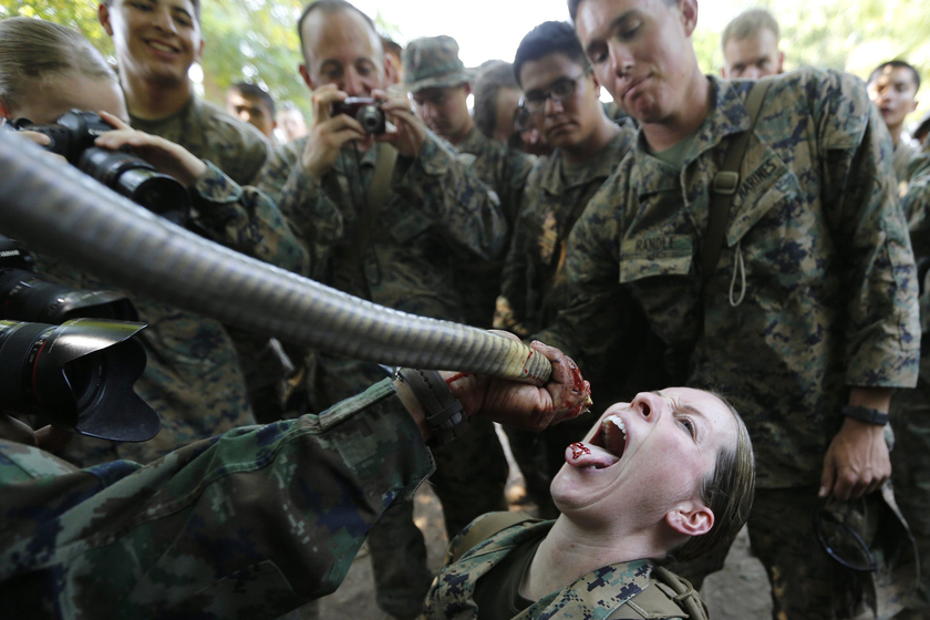 “金色眼镜蛇”联合军演 美国士兵生饮蛇血