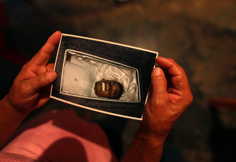 - 非战争灾难类重大新闻组照金奖——一个暴力的国家。根据联合国2011年的一份报告,一批批的暴力行为使得洪都拉斯成为了世界上最危险的地方,它的凶杀案发案率约为美国的20倍。图为2012年3月9日,在洪都拉斯圣佩德罗苏拉,一位母亲展示据说被警察在家中杀死的儿子的照片。