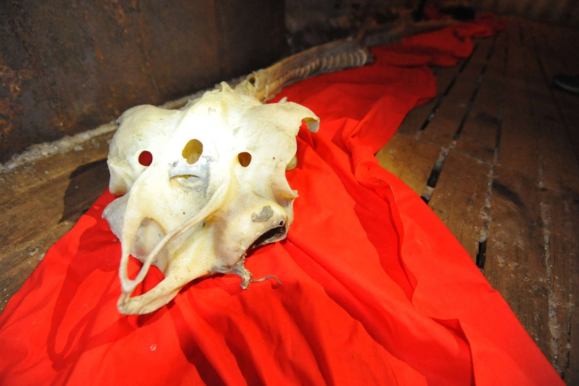 3月26日,青岛,渔民杨立广打捞回来的骨骸。汤臻/东方IC