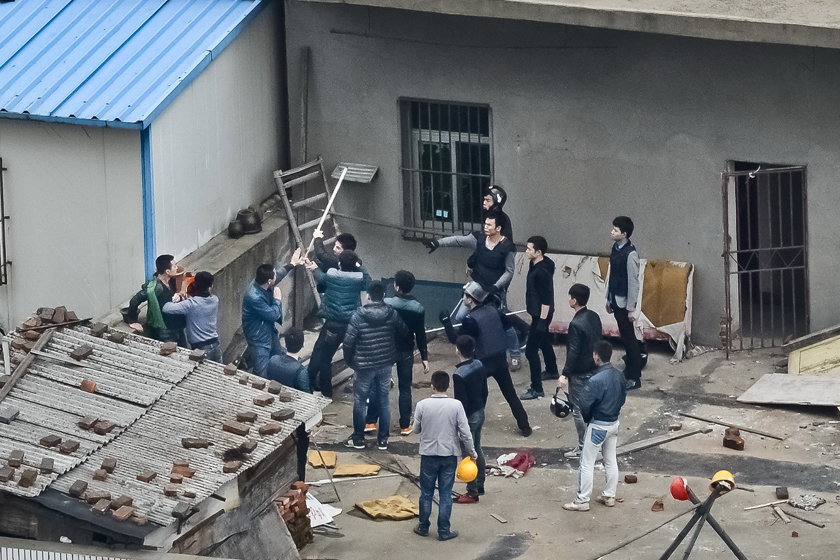 - 3月28日,江西省南昌市北京东路与上海北路交叉口,强拆人员与市民发生冲突,期间有男子抱着煤气罐坐在窗口上与警察对峙,更有房屋女主人与警察在楼顶发生冲突,被警察围攻后在楼顶欲跳楼轻生。 胖头陀/东方IC