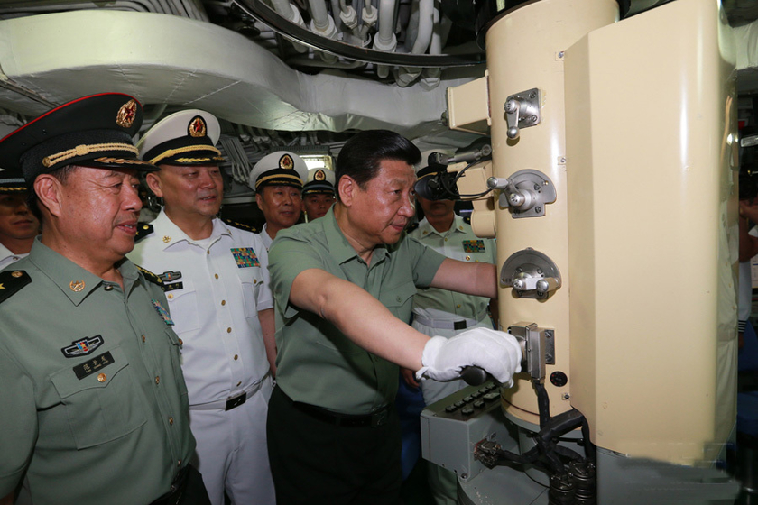 4月9日,习近平视察某新型潜艇,了解武器装备性能。 李刚/新华社
