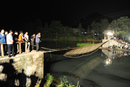 5月1日晚,湖南省凤凰县桃花岛一跨河吊桥因受力过度,导致桥墩断裂,桥面倾斜,部分参加篝火晚会后返回旅馆的游客经过吊桥时落水。凤凰县官方通报称桥面倾斜因游客兴奋过度摇晃所致。据官方通报,截止5月2日0:30分,落水游客已基本搜寻上岸,其中,24人送往医院检查,2人轻微伤留院观察,其余22人返回宾馆休息。 杨华峰/中新社