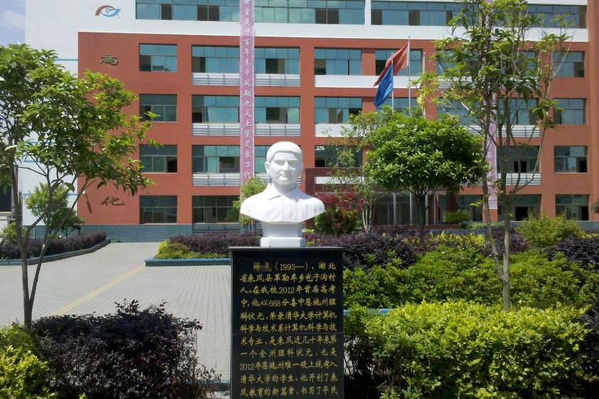 - 5月2日消息,湖北恩施州来凤县某高中竖了一块雕像,雕像的原型是该校2012年首届高考理科状元杨某。来凤县教育局赶到该校了解情况后,校方便拆除该雕像。据悉,2012年杨某因成为当地首位考上清华的考生,学校曾为其举办过“状元游街”活动。 CFP