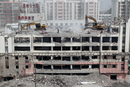 5月2日,郑州市陇海路一楼房顶部,2台拆楼机械在逐层拆除楼房。 沙浪/CFP