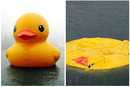 - 5月14日,香港,小黄鸭因漏气“卧倒”在维多利亚港。 35度/东方IC