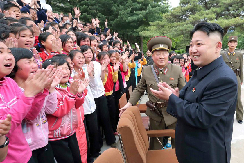 - 当地时间5月19日,朝鲜最高领导人金正恩与夫人李雪主访问妙香山少年团野营所,与孩子们合影,孩子们激动大哭。 CFP