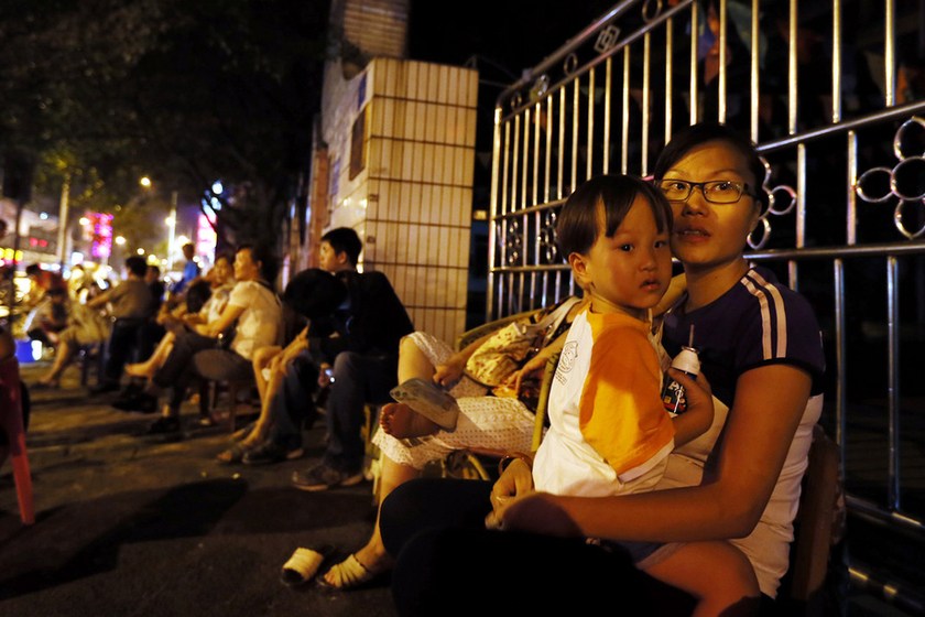 - 6月14日晚,广西柳州,家长在幼儿园门口排队。 杨春/东方IC