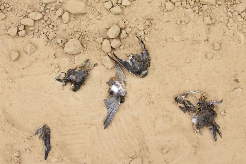 6月20日,郑州航海西路南水北调施工现场,几千个崖沙燕洞巢遭到破坏,崖壁下散落着燕子的尸体。 张红亚/CFP