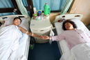 6月27日,山东省潍坊市人民医院手术室,王传丽的儿子丁伟在表姐的陪伴下准备接受母亲的捐肾手术。 张驰/CFP