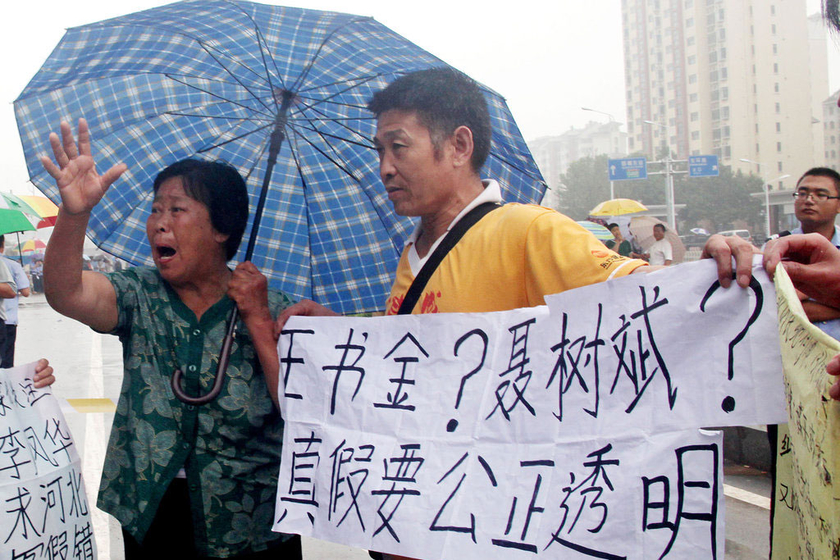 7月10日,河北省高级人民法院在邯郸再次开庭审理王书金强奸杀人案, 场外围观的群众。 王子瑞/东方IC