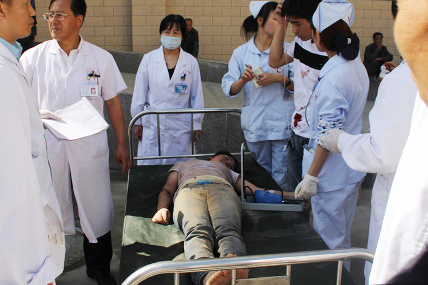 - 7月22日,发生在甘肃省定西市岷县、漳县交界的地震已导致94人死亡,1人失踪,887人受伤。此次地震致岷县多个乡镇受损,梅川镇等乡镇房屋倒塌严重,图为伤员在医院接受救治。 韩聪志 /CFP
