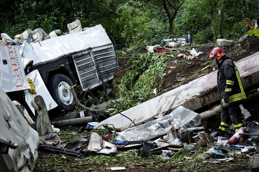 - 当地时间7月28日,意大利阿维利诺,一辆载有40余人的大巴车当晚在A16高速公路上发生车祸并冲下高架桥,目前死亡人数已升至39人。初步判断,大巴车在高速路上与其他车辆追尾后冲出护栏,从至少25米高的高架桥上跌落。 Salvatore Laporta/东方IC