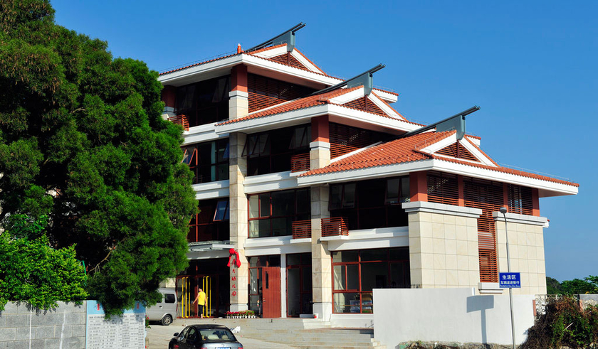厦门一大学幼儿园园舍正对着胡里山海岸,白城海域尽收眼底。幼儿园白墙红瓦,掩映在绿树之中,远远望去,很像是一座别墅。园方负责人说,新园舍是投资3000多万元在原址基础上改扩建的。 刘东华/CFP