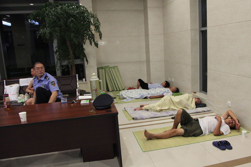8月10日,外来工在绍兴市政府机关会议中心纳凉。 王志成/CFP