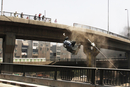 - 8月14日消息,埃及开罗,清场行动中,一辆载人警车被示威者推下桥。 Sabry Khaled/东方IC