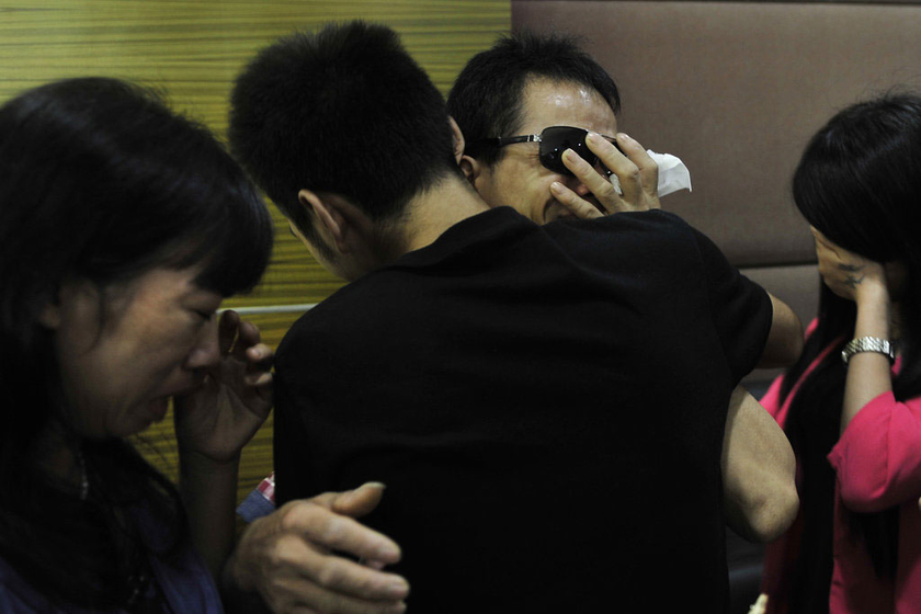 1994年8月的一个清晨,广州,黄寿平和甘洁莲夫妇两岁的儿子小吉丢了。2013年7月1日,黄寿平夫妇找到广州警方,让警方采集了他们的血样,并录入全国打拐DNA数据库。后经福清警方通过DNA对比找到黄寿平夫妇的儿子小吉。图为8月15日,福建省福清市公安局新闻发布厅,黄寿平夫妇把离散19年的儿子小吉紧紧搂在怀中, 久久不肯松手。 林水生/CFP