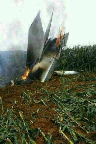 - 8月23日,辽宁省大连瓦房店,网友称一架军用飞机坠毁在复州城附近。据称飞行员为避免飞机坠落到人口稠密区域放弃跳伞,已经牺牲。 图片来源微博网友@杯酒奢华