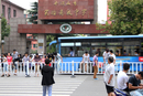 8月27日,河南省平顶山市新华区矿工路,实验高级中学校门口的斑马线被交通护栏拦截,学生如果想去对面吃饭只能绕一圈或“跨栏跳”。公交车呼啸而过,学生纷纷上演“跨栏秀”。 刘垚茜/CFP