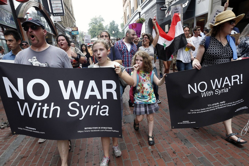 - 当地时间8月31日,美国波士顿,民众参加示威活动,抗议美国和西方国家军事干预叙利亚。 Michael Dwyer/东方IC