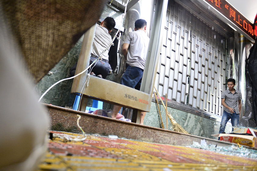 9月2日凌晨,福建省龙海市,程溪农村信用合作社一自动取款机发生爆炸。自动取款机被炸毁,信用社的玻璃墙及四楼以下的玻璃被震碎,停放在信用社门口的一辆面包车的玻璃被也被震破。事故没有造成人员伤亡,取款机内现金没丢失,爆炸的原因仍在调查中。 CFP