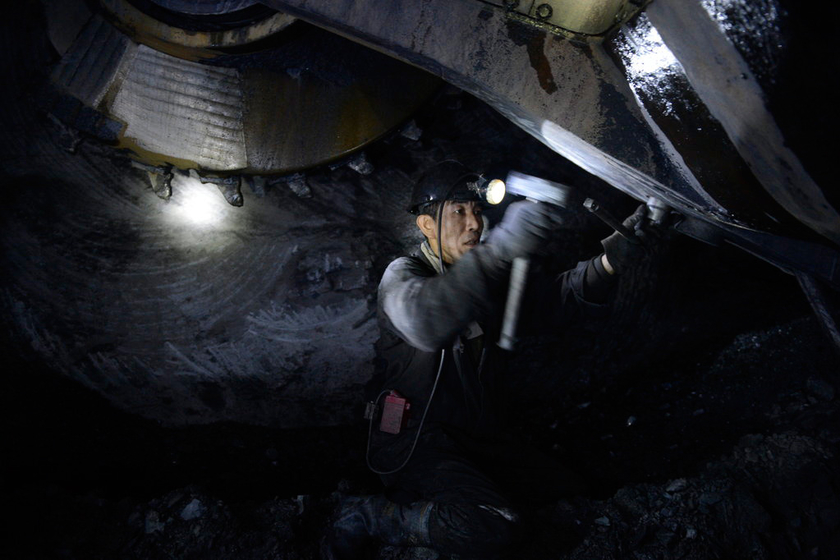 2012年06月17日,山西省吕梁市某煤矿矿工正在井下工作。 胡远嘉/CFP