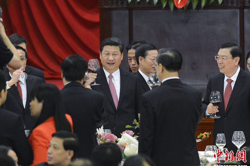- 9月30日晚,国务院在北京人民大会堂举行国庆招待会,热烈庆祝中华人民共和国成立六十四周年。习近平、李克强、张德江、俞正声、刘云山、王岐山、张高丽等党和国家领导人与1100多位中外人士欢聚一堂,共庆共和国华诞。