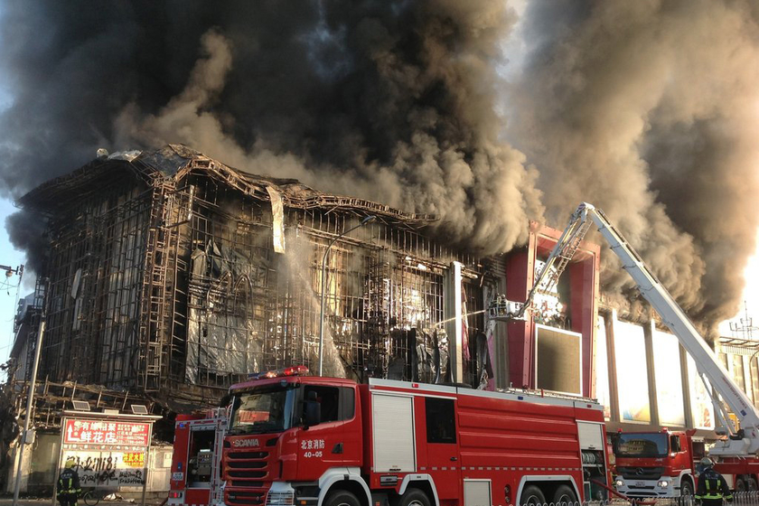 10月11日,北京石景山苹果园喜隆多商场发生火灾,据称大火至少从凌晨2时开始燃烧。3时20分,八大处中队官兵实施火灾扑救。凌晨5时,刘洪魁同志跟随刘洪坤同志进入火场内部实施攻坚,刘洪魁、刘洪坤两名同志在实施救援过程中壮烈牺牲。 wly/CFP