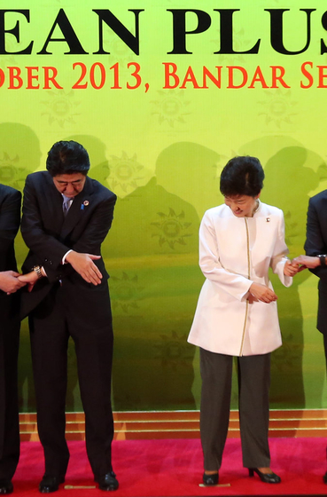 当地时间10月10日,第16次东盟与中日韩(10+3)领导人会议在文莱首都斯里巴加湾举行,与会领导人在会议开始前集体合影。 Ahim Rani/Reuters