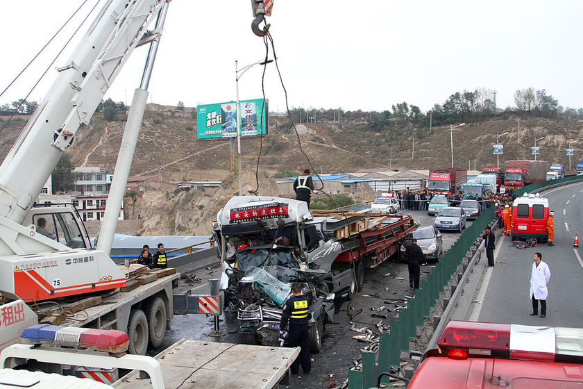 10月15日,连霍高速距离兰州东出口约五百米处车祸现场。 浅行/CFP