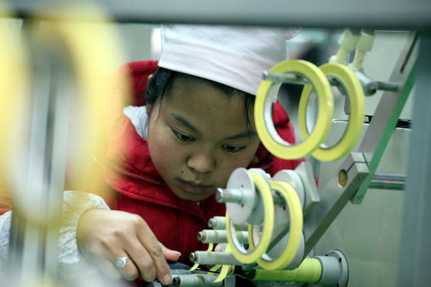2012年2月21日,四川省华蓥市工业新城的电子加工厂,一位刚接受完职业技能培训的新生代农民工在紧张工作。 邱海鹰/CFP