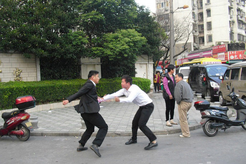 - 10月22日下午,上海闵行区静安新城小区门口,两家中介公司的员工为了争抢房源大打出手。目击者称,当时两家房产中介公司的员工带着各自客户,看中了小区里同一套房源。为了争抢房源,两家中介公司员工言语不合,接着就动起手来,参与斗殴的共有五六人,在路人的劝解下,这场持续十余分钟的“全武行”才结束。