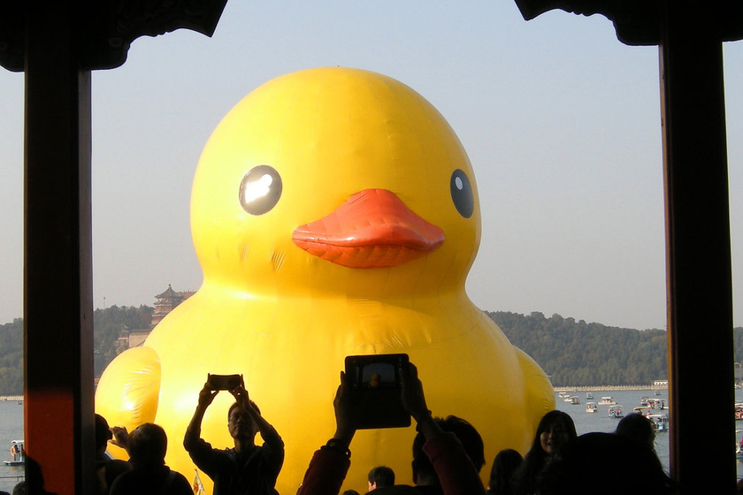 北京颐和园人潮汹涌告别大黄鸭