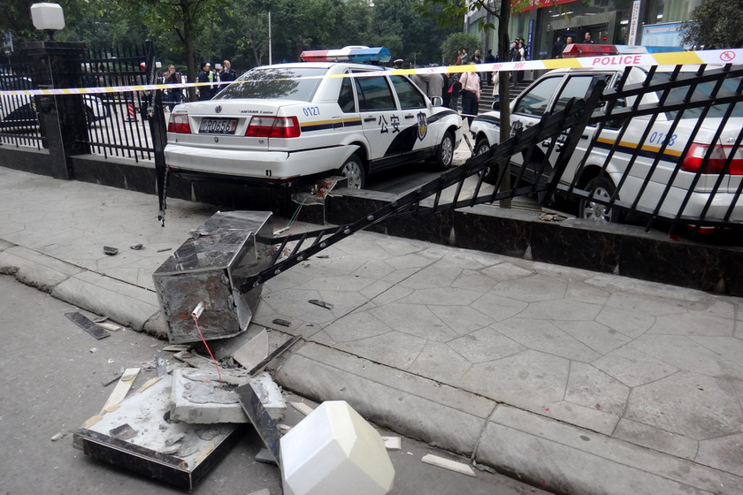 - 10月28日,四川南充,南充交警一大队和南充市中级人民法院现场一片混乱,事故造成2民警受伤、5辆警车受损。 山水先生/CFP