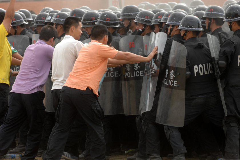2009年9月27日,福建泉州多警种联合反恐演练。反恐突击车、爆震弹、弓弩、拐弯枪……一批高科技反恐武器一一亮相,令人大饱眼福。图为丰泽警方模拟处理医患纠纷闹事。 CFP