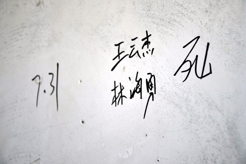 2013年10月27日,浙江温岭市箬横镇浦岙村,连恩青住所的墙壁上用黑色记号笔写着几个字,笔迹潦草:“7·31,王云杰、林海勇,死。” 金云国/CFP