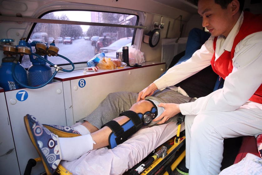 2013年10月24日下午,北京,伤者在恩济庄派出所录完口供后被推上120急救车。10月23日凌晨零时许,海淀区万寿路路口东北角,120急救车组对一名女性醉酒者施救后,遭其同伴拒付费用。沟通中,急救医生和急救车司机被打,后者髌骨骨折。当事人员被警方带走调查。 王远征/CFP