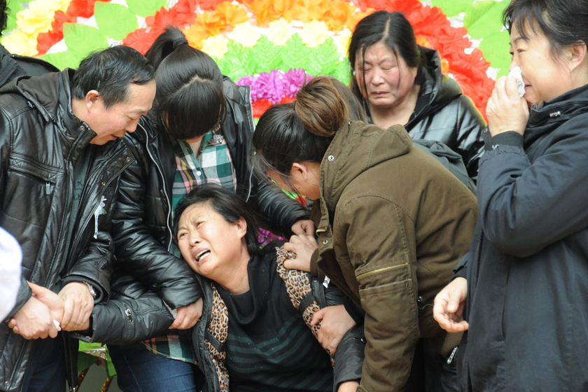 2012年3月27日15时,哈尔滨医科大学附属第一医院在篮球馆为“3·23”案件中死亡的医务人员王浩举办追悼会,近千人参加了追悼活动,王浩的母亲(中)悲痛欲绝。 3月23日16时30分许,哈尔滨医科大学附属第一医院住院处风湿免疫科病房发生一起伤害医务人员案件,造成一死三伤。死者王浩系哈尔滨医科大学09级硕士研究生,在该科室实习,出事前刚收到香港中文大学博士研究生录取通知书。 李巍/CFP