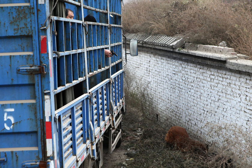 - 10月30日,河北石家庄塔谈二区内,两只无主藏獒连连伤人,小区的40余名保安和闻讯赶来的20余名民警先后加入这场“人獒大战”。民警在多个位置开数枪,经过半个小时的“激战”,终将两只藏獒制服。图为民警隐蔽在大卡车上向藏獒开枪。 崔靖/CFP