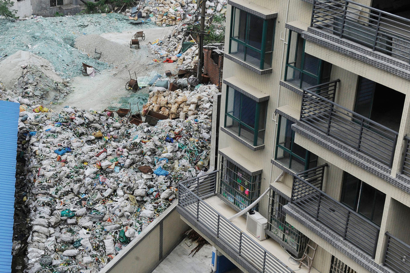 2012年6月14日,广东省广州市白云红星村七栋11-12高层属违章建筑。高楼旁边紧挨着回收场。 冯宙锋/CFP