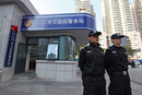 为了防止杀医等类似恶性事件再生,浙江台州警方开始向当地部分医院陆续进驻警力,并给安保人员配备防刺背心、防刺手套、催泪器等相关警务装备。图为12月4日,两名民警在台州市立医院警务室前警戒。 CFP