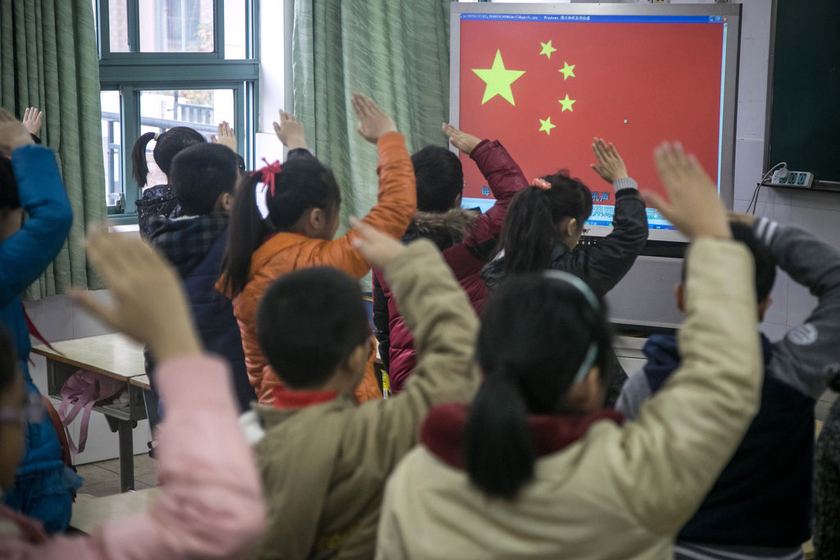 12月9日,杭州濮家小学万家校区,受雾霾天气影响,升国旗仪式被迫移至教室内举行。 陈中秋/CFP
